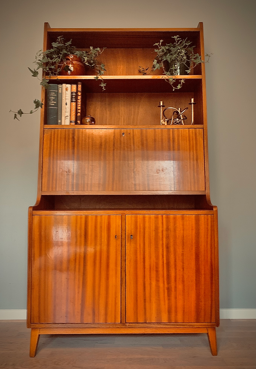 Vintage bokhylla/sekretär med klafflock i mahogny